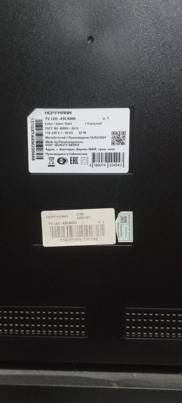 Ekrani sinib zapcast kimi satiram Hoffmann TV 43B3800 – Black - Gərginlik: 110–240 V, 50 Hz - Güc sərfi: 65 W - Rəng: Qara - Versiya: V1 - Xalis çəki: 7.1 kq