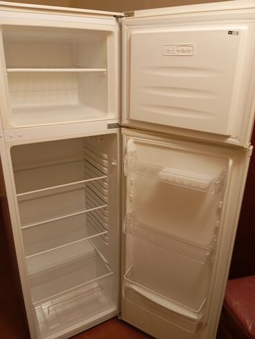 Hoffmann iki qapılı soyuducu - Üst kamera: dondurucu bölmə, içəridə 1 rəf - Alt kamera: soyuducu bölmə, 3 şüşə rəf və aşağıda böyük bölmə - Qapı rəfləri: 3 ədəd şəffaf plastik rəf (butulka, sous v...