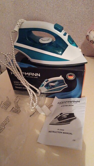 - Hoffmann buxarlı ütü, model SI 2000. Qutu və istifadə təlimatı ilə. 2000 W güc, buxar funksiyası, keramika altlıq, temperatur tənzimləyicisi, su çəni və sprey düyməsi. Şəbəkə kabeli ilə.