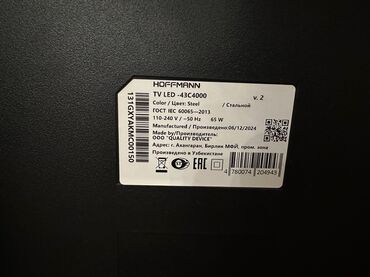 Hoffmann LED TV – Model: LED-43E3400 (Model kodu: 43E3400) - Ekran diaqonalı: 43 düym sinif (etiketdə “LED-43E3400”) - LED panel, geniş baxış bucaqları - Güc sərfi: 74W - Gərginlik: AC 100–240V, 5...