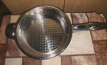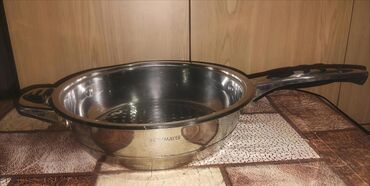 Hoffmayer paslanmayan polad tava - Material: paslanmayan polad (inox) - Brend: Hoffmayer - Çap: təxmini 24–26 sm (geniş, dərin içlik) - Dibi: çoxqatlı qalın baza, içdə xırda çıxıntılı/teksturalı s...