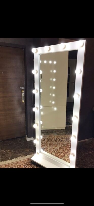 Su qiymətinədir. TƏCİLİ SATILIR‼️ - Məhsul: Vizaj/loft üslubunda tam boy güzgü - Rəng: Ağ karkas - İşıqlandırma: Perimetri boyu yerləşdirilmiş çoxsaylı E27 tip lampalar (makiyaj və paltar sınağı üç...