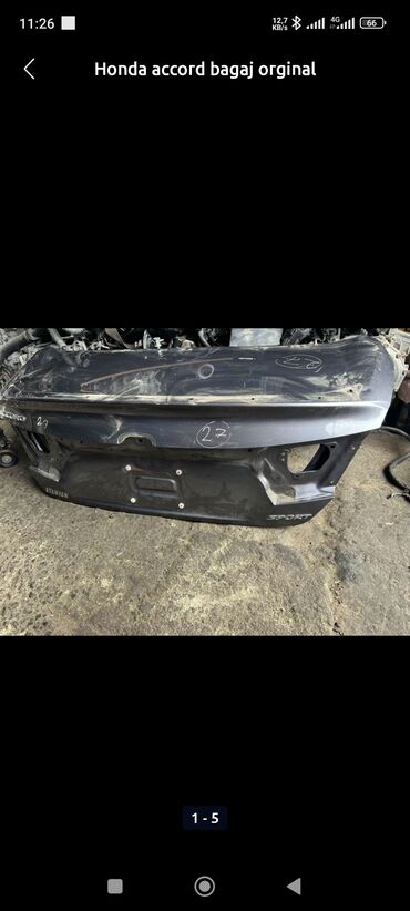 Qara rəngdə Honda Accord avtomobilinin baqaj qapağı. Üzərində işıqlar və nömrə yeri mövcuddur. Ehtiyat hissəsi kimi istifadə üçün əla seçimdir.