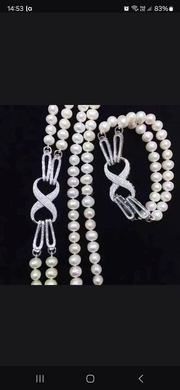 Hong Konq sergide alinib təbii yapon mirvari dəst boyunbağ qolbag 24 qızıl suya salınıb qaralmayan materialdi Swarovski qaşlardi
