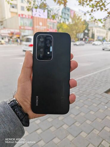 HONOR smartfon - Marka/model: HONOR (arka hissədə “HONOR” loqosu, yeni nəsil dizayn) - Rəng: Qara, mat teksturalı arxa panel - Ekran: Tam ekranlı ön panel, damla tipli ön kamera çıxıntısı ilə; naz...