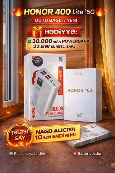 💖 Honor 400 Lite Sevgisi! 8GB RAM / 256GB ROM. Zəmanət + Qeydiyyat = Tam Rahatlıq. Kredit YOX! Lənkəran. ✨ Əlavə olaraq super Powerbank hədiyyəsi! Telefon pakofkadı