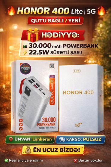 📱💎 Honor 400 Lite 5G | yeni, açılmayıb | 🎁 powerbank | 🚚 kargo pulsuz | 🏆 ən ucuz bizdə | 💸 endirim var | 📍 Ünvan: Lənkəran