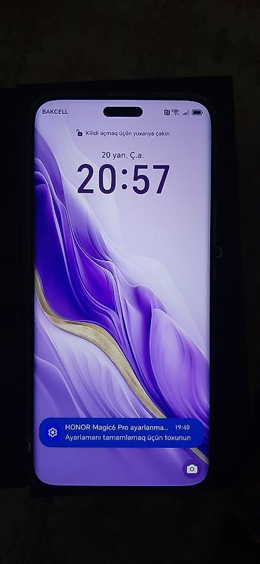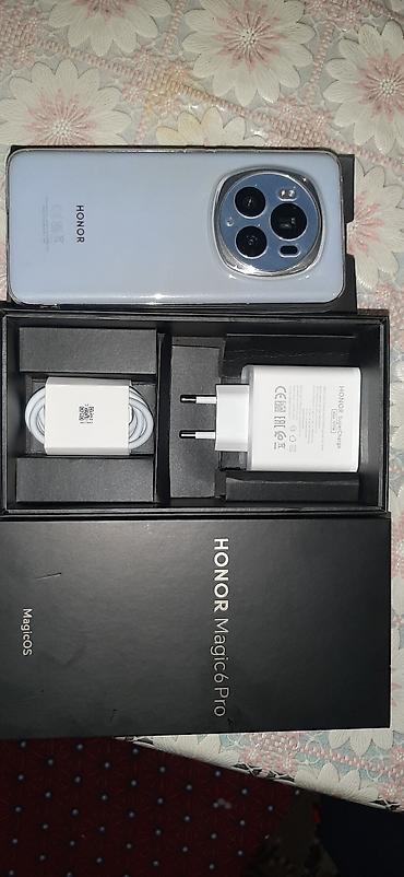 Qutu məzmunu/aksesuarlar barədə məlumat şəkillərdə görünmür. Model yüksək səviyyəli kamera sistemi və sürətli performansı ilə seçilən HONOR Magic6 Pro-dur.