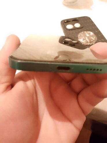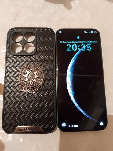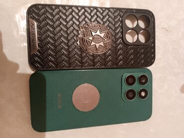 Honor smartfon – yaşıl rəng, arxa tərəfi teksturalı dizayn. Arxa kameralar kvadrat modulda 3 linza + flaş yerləşimi ilə. Arxa hissədə maqnitli dairəvi plaka (MagSafe tərzi tutucu/maunt üçün) quraşdırılıb. Ekranda üz tanıma funksiyası haqqında bildiriş görünür – cihazda Face ID/Üz tanıma mövcuddur. Səssiz/rejim və səs düymələri sol kənarda, düz kənarlı korpus.