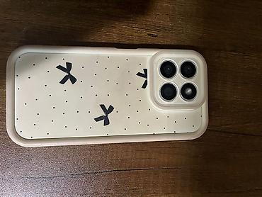 - Qutuda/aksesuar kimi şirin naxışlı qoruyucu keysi göstərilib (krem rəng, xırda nöqtələr və qara kəpənək/qurdelayı fiqurları, kamera modulu üçün qabarıq qoruma)