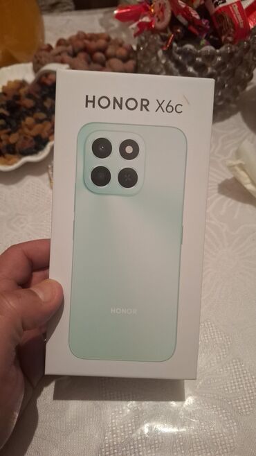 - Qutu şəkli: HONOR X6c dizayn üslubunda rəng və kamera bloku göstərilən orijinal paket