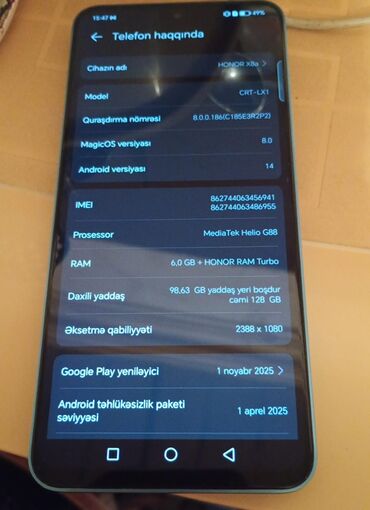 - Android təhlükəsizlik paketi səviyyəsi: 1 aprel 2025