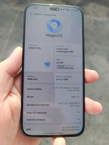 Honor X8C 6/128 teze alınıb qarantıyası var barter mumkundu ıphone modelıyle Elaqe Whatsaap 0553945114