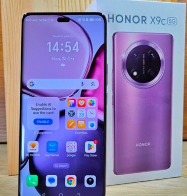 HONOR X9c 5G – smartfon - Model: HONOR X9c (5G) - Rəng: bənövşəyi (qutudakı görüntü) - Yaddaş: 256 GB ROM - Operativ yaddaş: 8 GB RAM - İki SIM (Dual SIM) - Model kodu: BRP-NX1 - Kamera: dairəvi m...