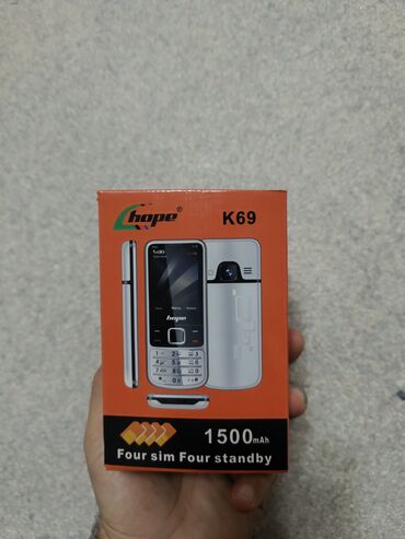 Model: Hope K69. Qutulu təqdimat. Dörd SIM-lə bir cihazda şəxsi, iş və digər nömrələri idarə etmək üçün ideal. 1500 mAh batareya gündəlik istifadə üçün kifayət qədər güc təmin edir. Klassik və davamlı düyməli telefon həllini axtaranlar üçün uyğundur.