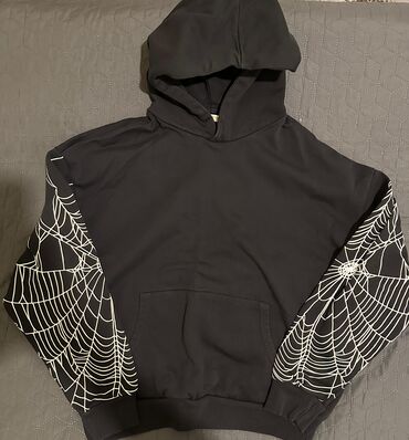 Qara kapüşonlu svitşört – qol hissələrində ağ hörümçək toru naxışı • Rəng: qara, ağ print detallar • Dizayn: hər iki qolda iri hörümçək toru qrafikası • Kapüşon: ikiqat parçalı, başı yaxşı örtür •...