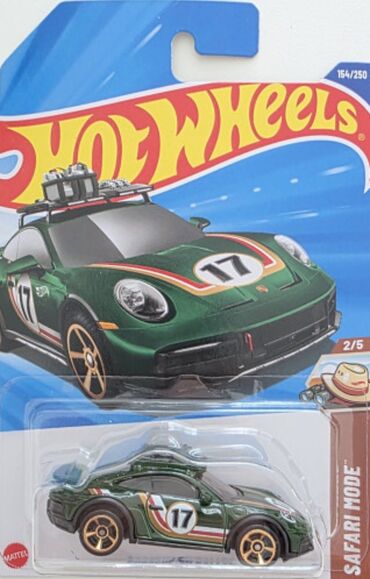 - Porsche 911 Safari (Safari Mode) – kartda 154/250 və 2/5. Yaşıl off-road tərzi, damda yük daşıyıcısı və avadanlıq, 17 nömrəli yarış zolaqları, qızılı disklər.