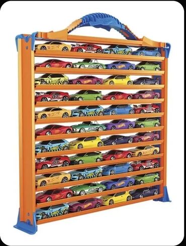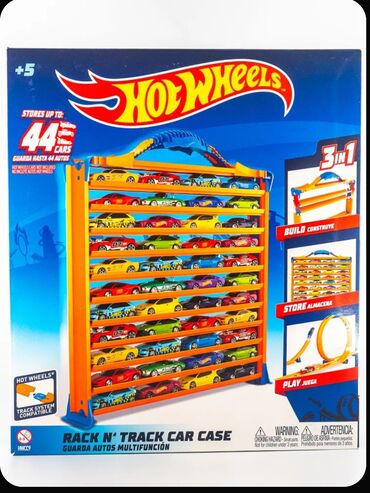 - 44 ədədə qədər Hot Wheels avtomobilini saxlamaq üçün şaquli rəf sistemi (avtomobillər daxil deyil).