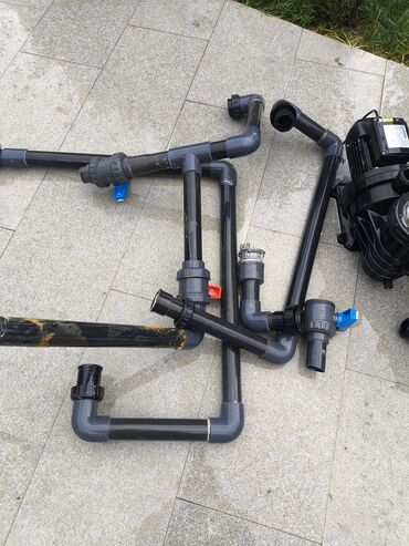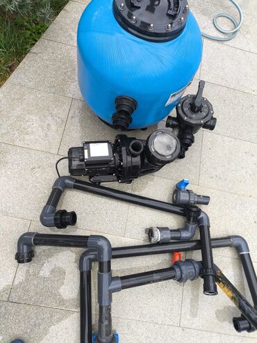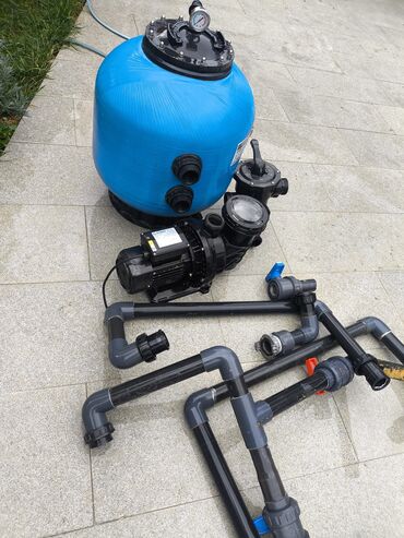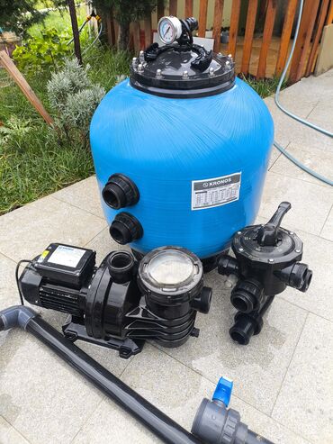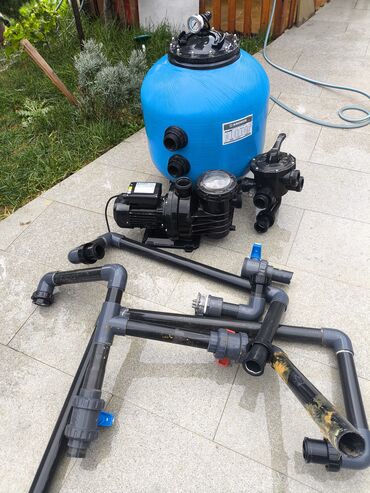 - Qum filtri, nasos və klapan üzərində giriş-çıxış rezekləri mövcuddur; sistemin yığılması üçün qum/filtr mediası ayrıca təmin edilir.