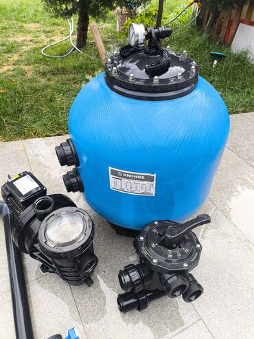 - Böyük həcmli kompozit qum filtri (manometrli üst qapaq, çoxyollu kran/valf ilə)