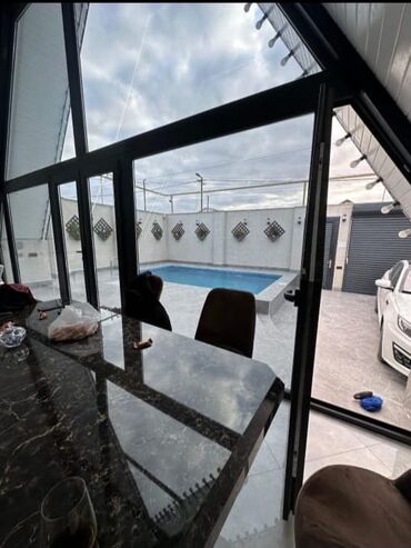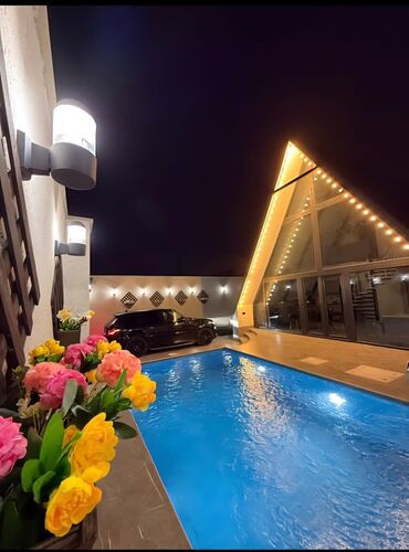 - Həyət: gecə işıqlandırmalı, geniş terraslı, şəxsi isti hovuz. Hovuz kənarında oturmaq üçün zona, dekorativ güllər və divar işıqları.