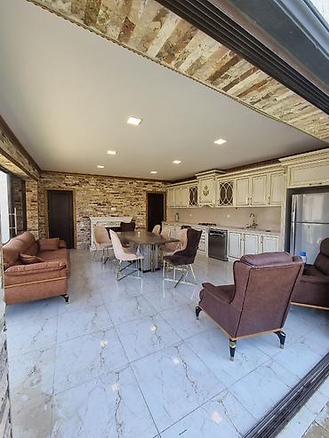 Bağ evi – geniş həyət və hovuzlu əşyalarla birlikdə satılır 0773225616 - İki mərtəbəli fərdi yaşayış evi, mansardlı planlama - Geniş eyvan və balkon, metal məhəccər - Həyətində üzmə hovuzu (pillək...