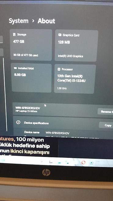- Model adı sistemdə HP Laptop 15-fd0xxx kimi görünür.