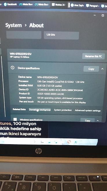 - Prosessor: 13-cü nəsil Intel Core i5-1334U (1.30 GHz, x64)
