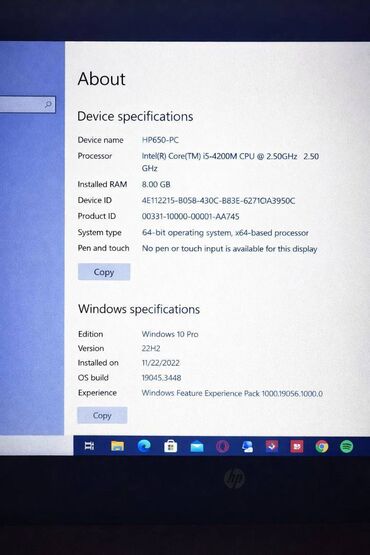 - Əməliyyat sistemi: Windows 10 Pro, versiya 22H2 (OS build 19045.3448)