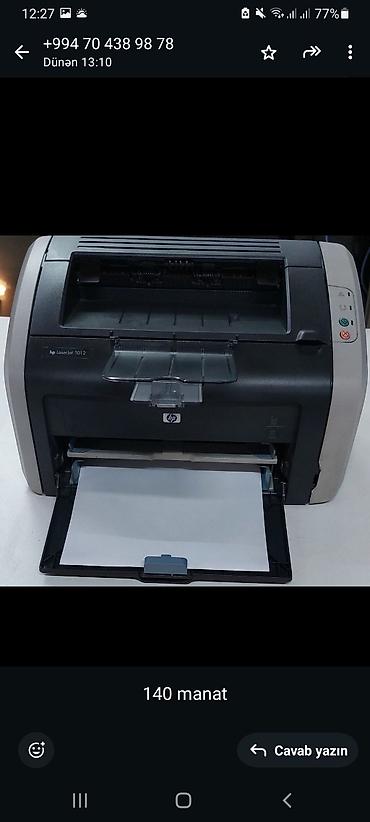 HP LaserJet 1010 lazer printer - Növ: Monoxrom lazer printer - Model: HP LaserJet 1010 - Qoşulma: USB - Kağız formatı: A4 (standart ofis kağızları) - Çap sürəti: təxminən 12 SƏ/ dəq (istehsalçı gö...