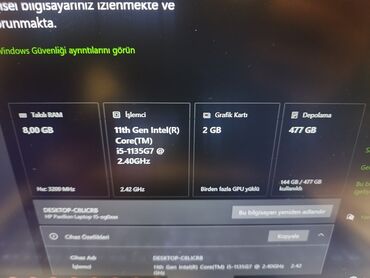 - Prosessor: 11-ci nəsil Intel Core i5-1135G7, 2.40 GHz
