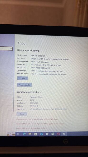 HP noutbuk Ram 8gb Yaddaş 256gb Windows 10 pro Səliqəli işlənib