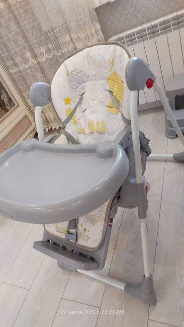 "Chicco" brendinə məxsusdur Az istifadə olunub Çox rahatdır, 4 polojeniyası var həm bel üçün, həm də oturacağın aşağıya tam enməsi üçün. Çox rahat təmizlənir, masası rahat çıxır və yuyula bilir