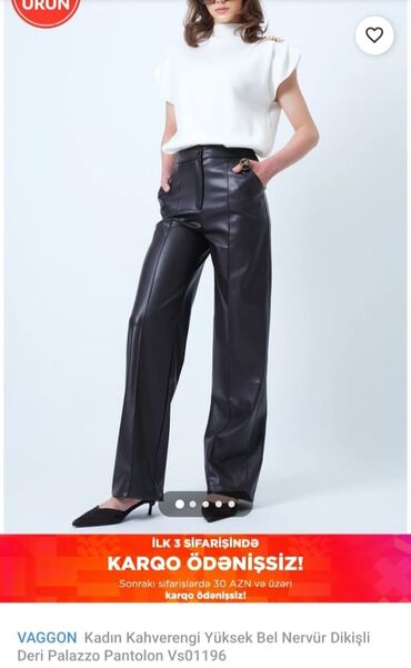 Dəri şalvar Rəng:qara Razmer:S Qiymət:20 azn. Çatdırılma metrolara