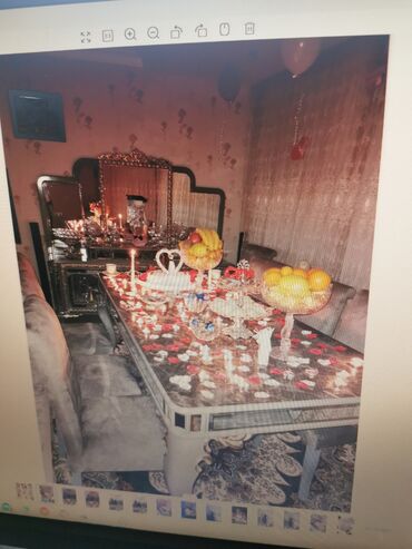 Klassik üslubda böyük bufet və güzgü komplekti - Material: masif ağac karkas, dekorativ oyma detallar, qabartmalı bordürlər - Rəng: isti qoz/şabalıd tonları, panellərdə naxışlı finiş - Üst hissə: ...