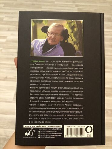 Ünvandan götürməStiven Hokinqin "Hər Şeyin Nəzəriyyəsi" adlı kitabı kainatın yaranması və taleyi haqqında geniş məlumat verir. Kitab, böyük partlayışdan qara dəliklərə qədər müxtəlif mövzuları əhatə edir. Hokinq öz nəzəriyyələrini sadə və aydın şəkildə izah edir, oxucuların kainatın sirlərini daha yaxşı anlamasına kömək edir. Kitabın arxa üzündə müəllifin portreti və kitabın qısa xülasəsi yer alıb. Qara rəngli üz qabığı və üzərindəki parlaq naxışlar kitaba cəlbedici görünüş verir. Bu kitab, elm və kainat mövzularına maraq göstərən hər kəs üçün əla seçimdir.
