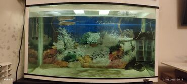 Akvarium satilir. Çox yaxşı vəziyyətdə. Dərinlik 40 sm Uzunluq 1 metr Hündürlük şüşə 65 sm Bütün hündürlük 135 sm