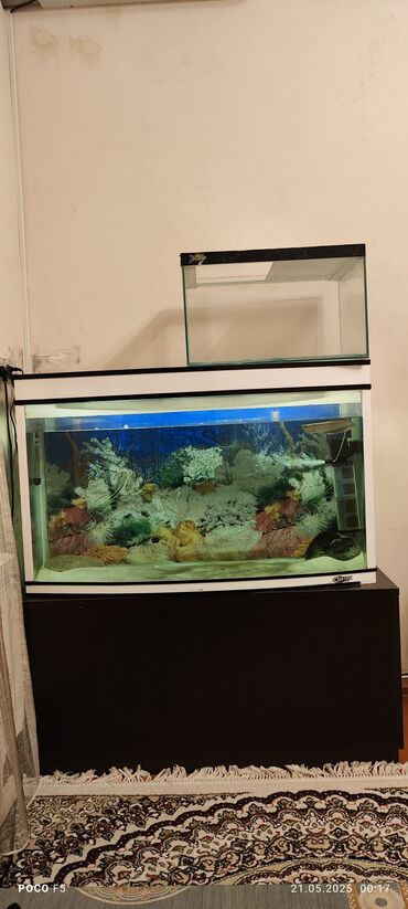 Satılır: Tam komplektli akvarium • Su filtri • Su qızdırıcısı • Termometr • Şüşə təmizləyici • Dekor • Kompressor • 4 rejimli LED işıqlandırma • Akvarium təmizləmə üçün tozsoran • Tor (saç...