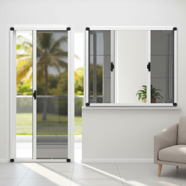 Ağ/alüminium rəngli çərçivəli pəncərə üçün tor (sineklik). - Düzbucaqlı forma, incə metal/plastik tor materialı sayəsində havanı və işığı buraxır, həşəratların daxil olmasını qarşısını alır. - Çərç...