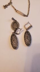 90-cı illərə aid gümüş dəst (boyunbağı, qolbaq, sırğa) və əlavə 1 ədəd gümüş boyunbağı.