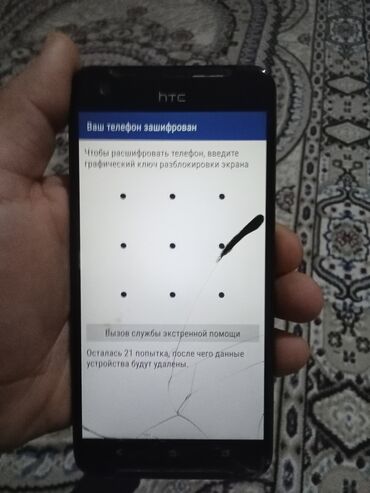 - Ekran: sensorlu, ön hissədə çatlar görünür; ekranda “telefon şifrələnib” bildirişi və naxışlı kilid pəncərəsi çıxır