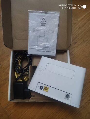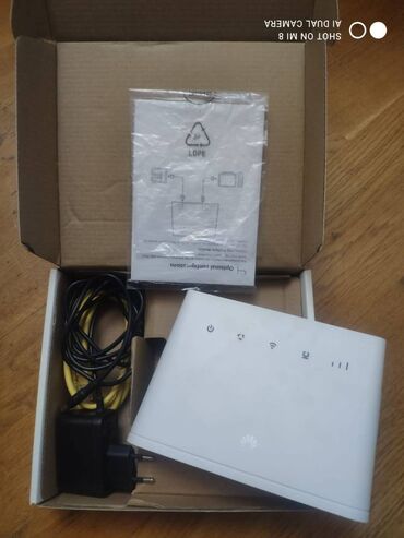 Huawei Wi‑Fi router - Model: Huawei (iki xarici antenalı) - Qoşulma: WAN/LAN portları, arxa paneldə çoxsaylı Ethernet çıxışları - Simsiz dəstək: 2.4 GHz Wi‑Fi, yüksək çəkmə üçün iki güclü anten - ...