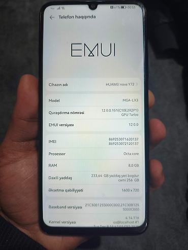 Huave Nova Y72 , 256 yaddaş 8 ram heçbir problemi yoxdu təzə kimidir