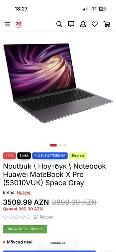 Endirimsiz3-4 aydi alinib hesablasan 1 ay islenmiyob tecili pul lazim oldugu ucin satilir. Huawei MateBook X Pro (53010VUK) – Space Gray