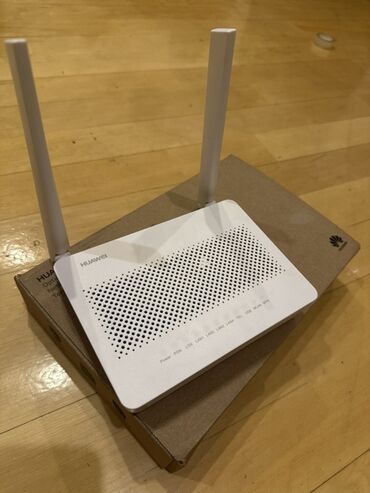 Huawei Wi‑Fi router - Marka/model: Huawei (üzərində “Huawei” loqosu) - 2 ədəd xarici antenna – sabit və güclü siqnal üçün - Ön paneldə göstəricilər: Power, PON/LOS, LAN1‑LAN4, TEL, WLAN, WPS və s....