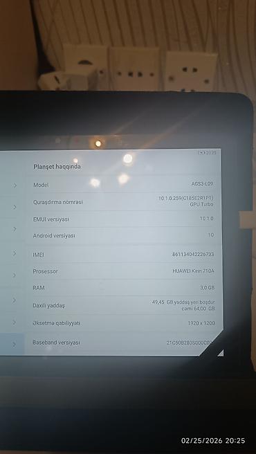 Huawei planşet – AGS3-L09 Xüsusiyyətlər: - Ekran: 10.1 düym, 1920 x