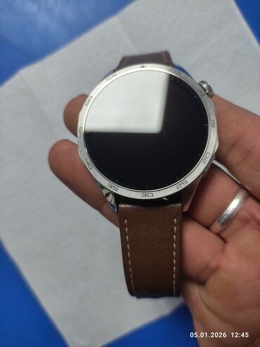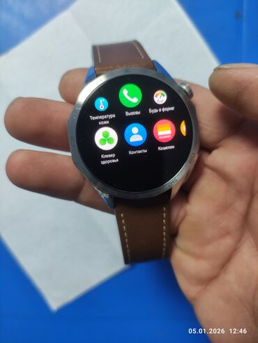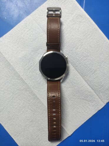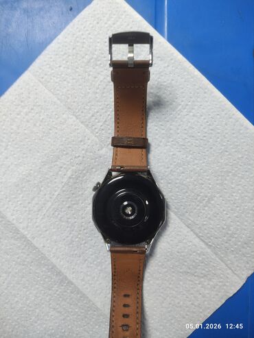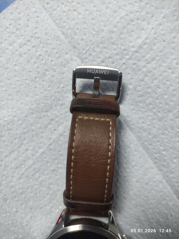 - Qəhvəyi dəridən 22 mm-lik kəmər, metal tokada “HUAWEI” loqosu