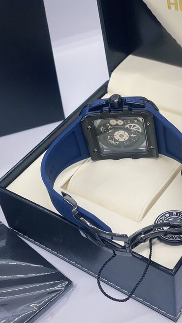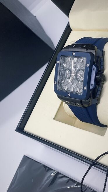 Hublot kvadrat/köşəli kassa dizaynlı kvars qol saatı - Brend: Hublot (qutu, içlik və asma medalyonla) - Seriya üslubu: Big Bang Spirit - Korpus: mat tünd mavi/qartanəvi tonlarda kvadrat kassa, ön ...