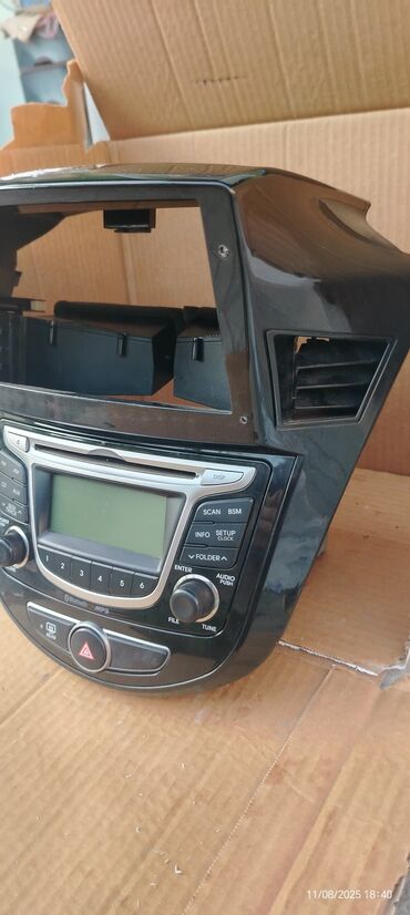 Hyundai üçün orijinal OEM mərkəzi multimedia/radio başlığı (panel ilə birlikdə). Xüsusiyyətlər: - MP3 dəstəyi - FM/AM radio - MEDIA, PHONE və RADIO üçün ayrılmış düymələr - Bluetooth funksiyası (t...