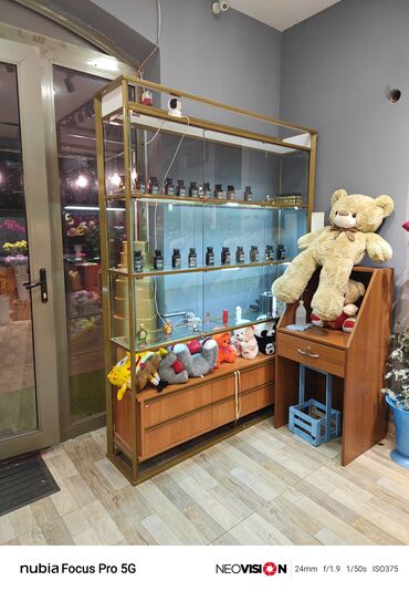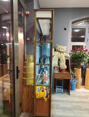 Parfüm və aksesuar vitrini - Şüşə vitrinli stend: çoxrəfli, işıqlı, açarlı ön şüşə qapılar, alt hissədə qapılı saxlama dolabları 3 eded etr telefon dolabi ayri ayriliqda da satilir heresi 100 azn